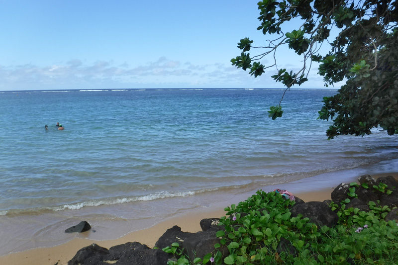 After a gourmet breakfast of Lucky Charms, we took off to Anini Beach. According to the websites, there was still some high surf on the North shore from Hurricane Lester. But Anini is pretty well protected. Although by the time we got there, the clouds were coming to the North side again. Looked like rain, too. But we snorkeled anyway.